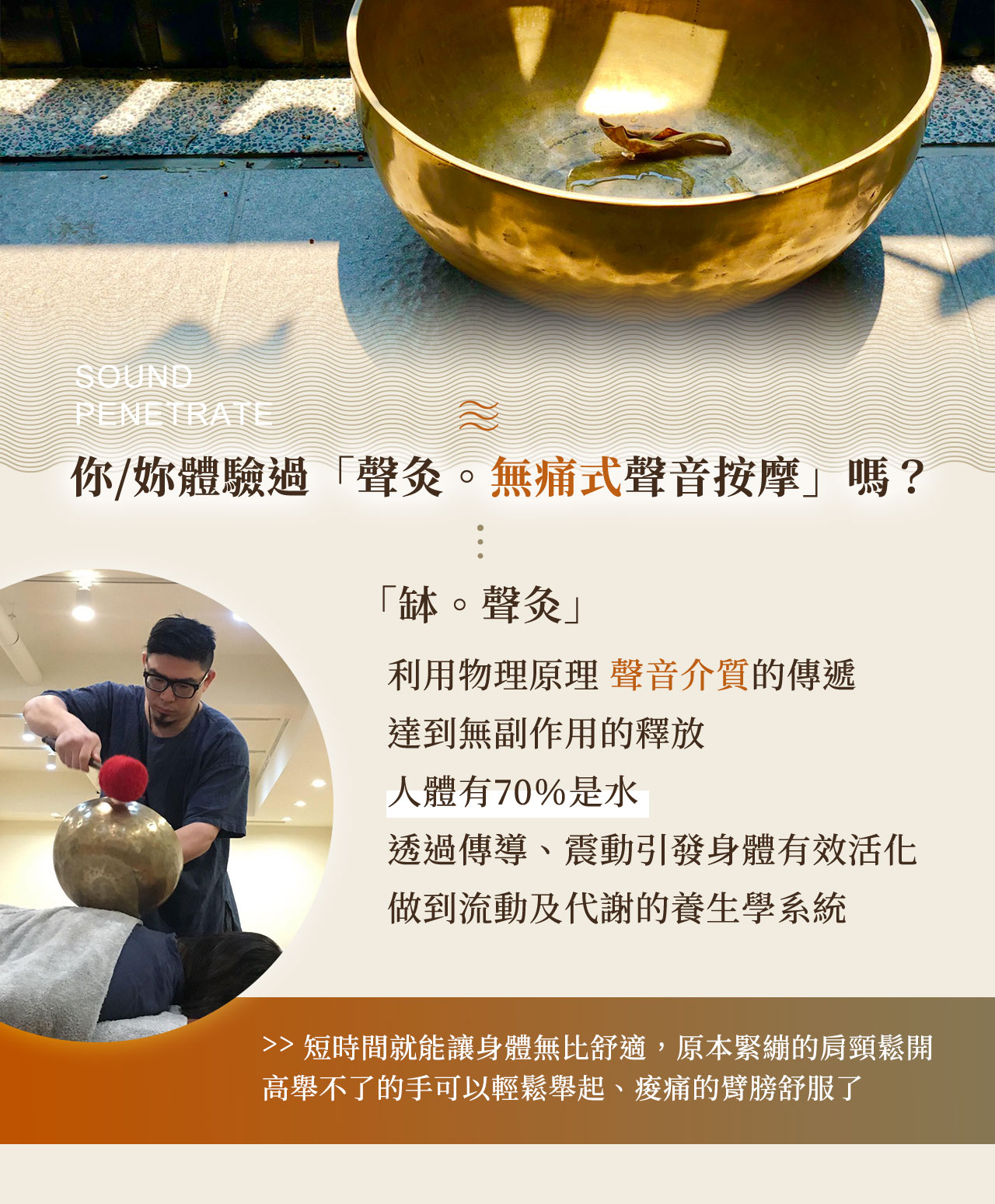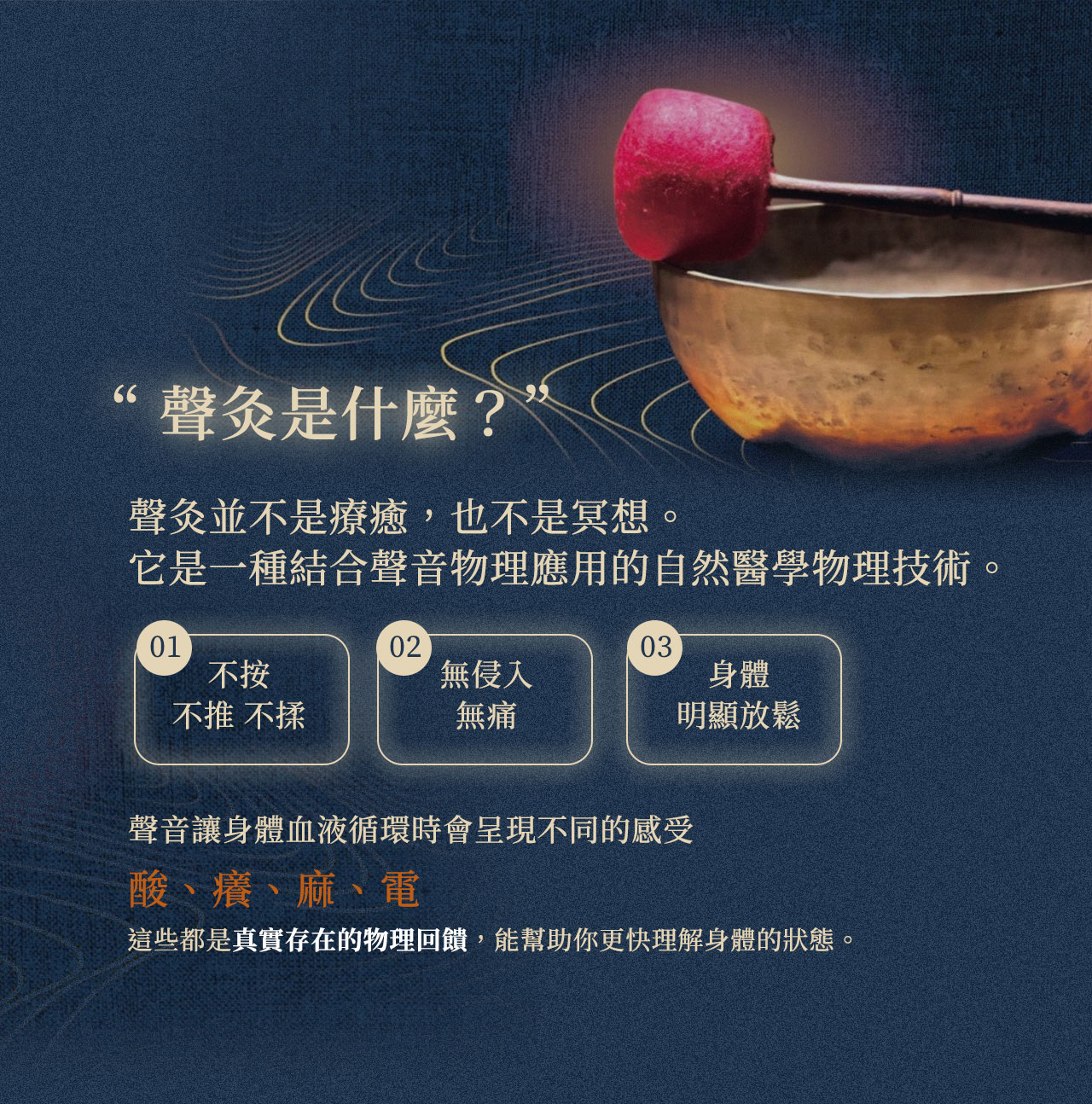 聲音,是物理應用的一種方式,透過傳導、震動進而引發身體有效的活化來做到流動及代謝的養生學系統。